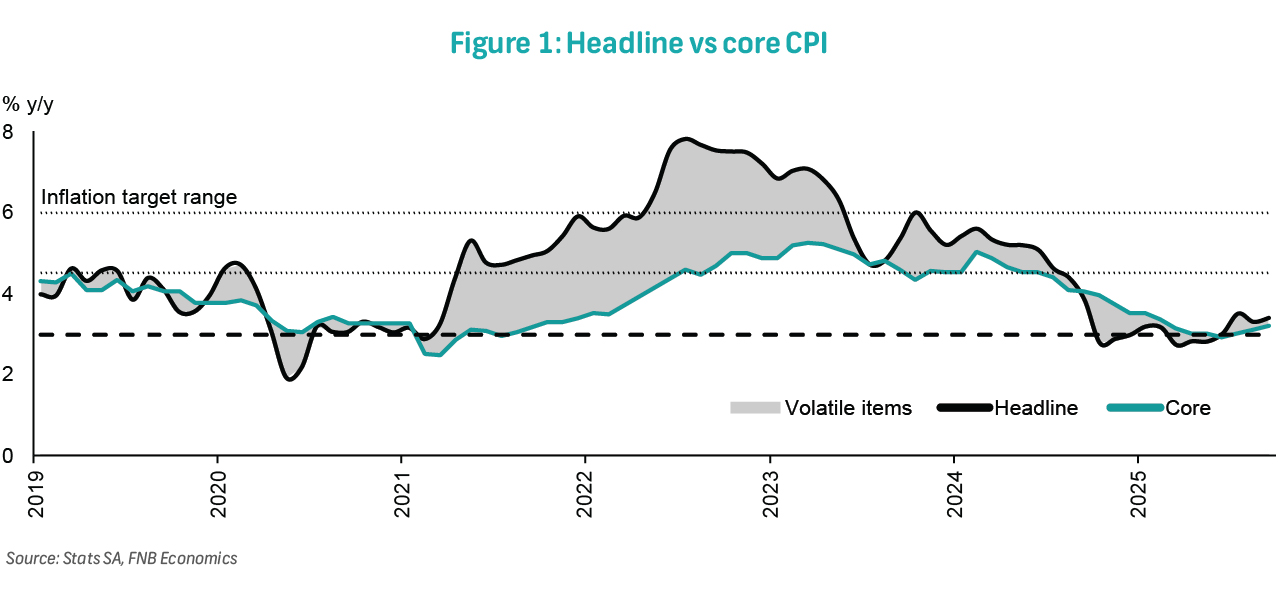 Considering this latest print, we see headline inflation lifting to 0.3% m/m and 3.8% y/y in October. This will reflect the hike in average fuel prices, which will push the year-on- year number out of deflationary territory. In addition, seasonal food price pressures could compound the upward pressure to headline inflation. That said, headline inflation should remain below 4% over the next year bar any negative shocks.