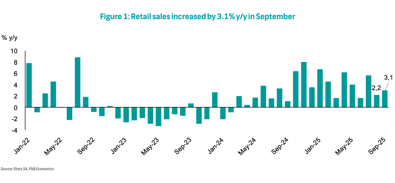 Retail sales growth strengthened to 3.1% y/y in September, up from 2.2% in August (revised down from 2.3%). This was marginally below market expectations of a 3.2% increase. On a month-on-month basis, volume sales were flat. However, total sales volumes rose 0.9% q/q in 3Q25, improving from 0.6% in 2Q25. This indicates that retail activity made a positive contribution to GDP growth in the third quarter.
