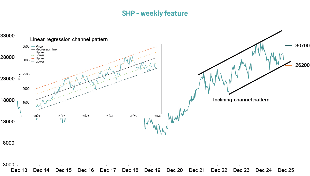| Comment | A low-volatility phase, potentially signalling stability and accumulation, remains of interest as the price tests its 200-day average. Downside momentum is, however, a concern. We target R157.00, with a trailing stop-loss at R125.00. | Price action remains constructive within the upward-sloping linear regression channel, though trading below the 200-day average confirms a counter-trend setup. Fading upside momentum is a concern. We target R1 255.00, with a trailing stop-loss at R966.00. | The position was closed after a stop-loss was triggered. Persistent and pronounced downside price momentum remains a concern, signalling the potential for further weakness in the share. |