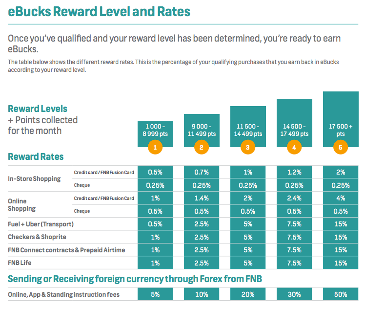 Your reward level is reviewed monthly, which means that you may be on a different reward level every month. Visit the eBucks website to try our handy eBucks Rewards Calculator for tips on how to move up a reward level.